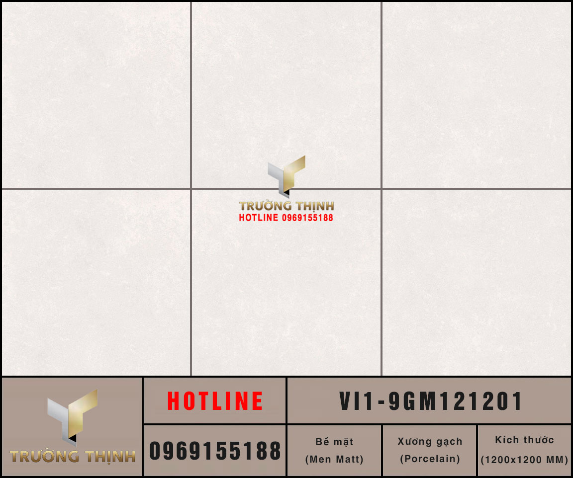 Gạch Viglacera VI1-9GM121201 sở hữu kích thước 1200x1200 mm ấn tượng, thuộc dòng gạch khổ lớn được sản xuất trên dây chuyền công nghệ hiện đại của Gạch Viglacera - thương hiệu uy tín hàng đầu tại Việt Nam. Đây không chỉ là một viên gạch thông thường, mà là một giải pháp kiến trúc giúp định hình phong cách và đẳng cấp cho mọi công trình, từ nhà ở dân dụng cao cấp đến các không gian thương mại, sảnh khách sạn hay trung tâm hội nghị.