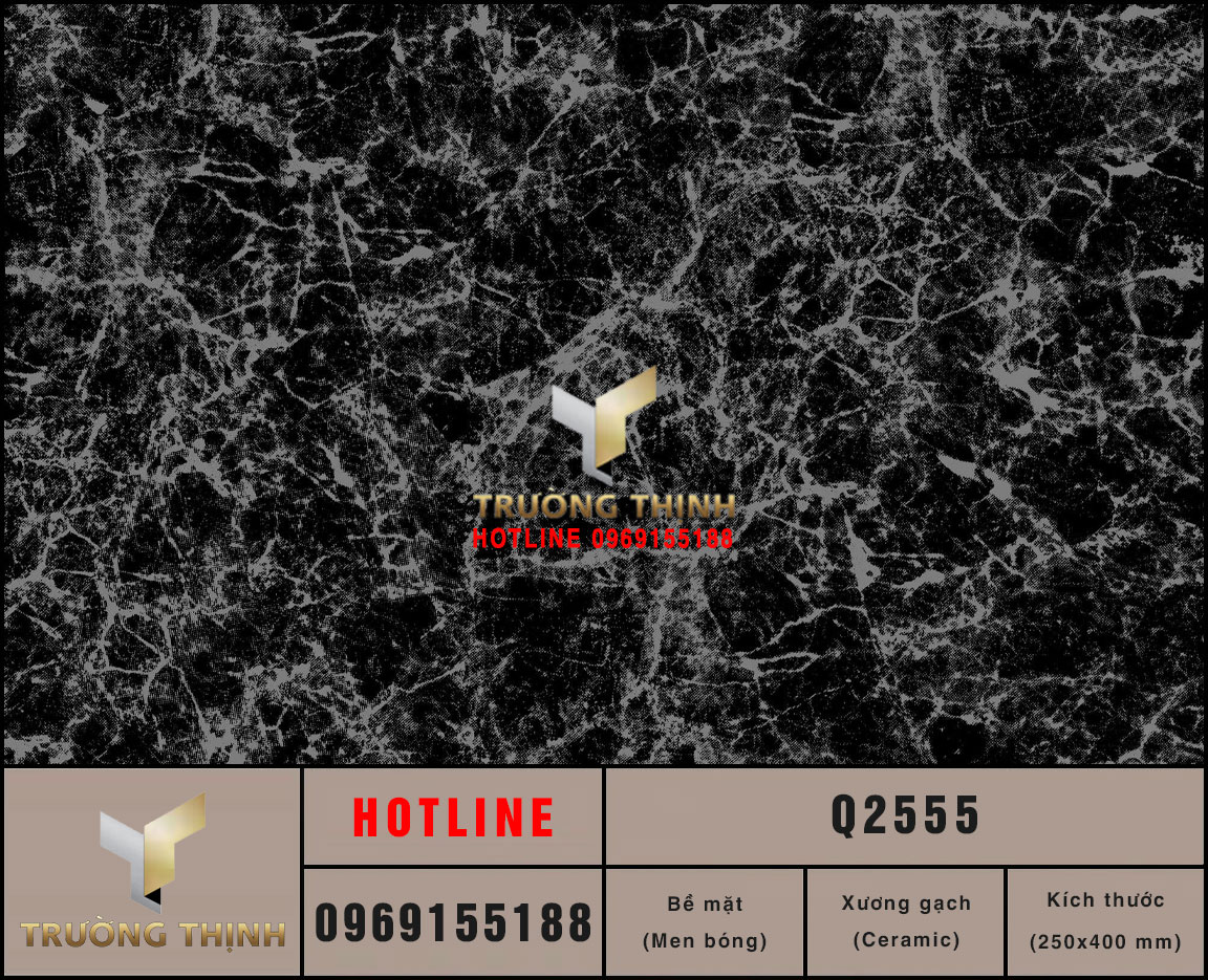 Gạch 250x400 Viglacera Q2555 là sự lựa chọn không thể bỏ qua cho những ai đang tìm kiếm một giải pháp ốp tường vừa đẹp, vừa bền, lại mang đậm phong cách. Với xương gạch Ceramic vững chắc, họa tiết vân đá tự nhiên, tone màu đen sang trọng, bề mặt men bóng dễ vệ sinh và kích thước tối ưu, sản phẩm này hứa hẹn sẽ nâng tầm giá trị thẩm mỹ và chất lượng cho mọi không gian sống. Hãy liên hệ ngay với Tổng đại lý gạch Viglacera Trường Thịnh để sở hữu sản phẩm tuyệt vời này và kiến tạo không gian mơ ước của bạn!