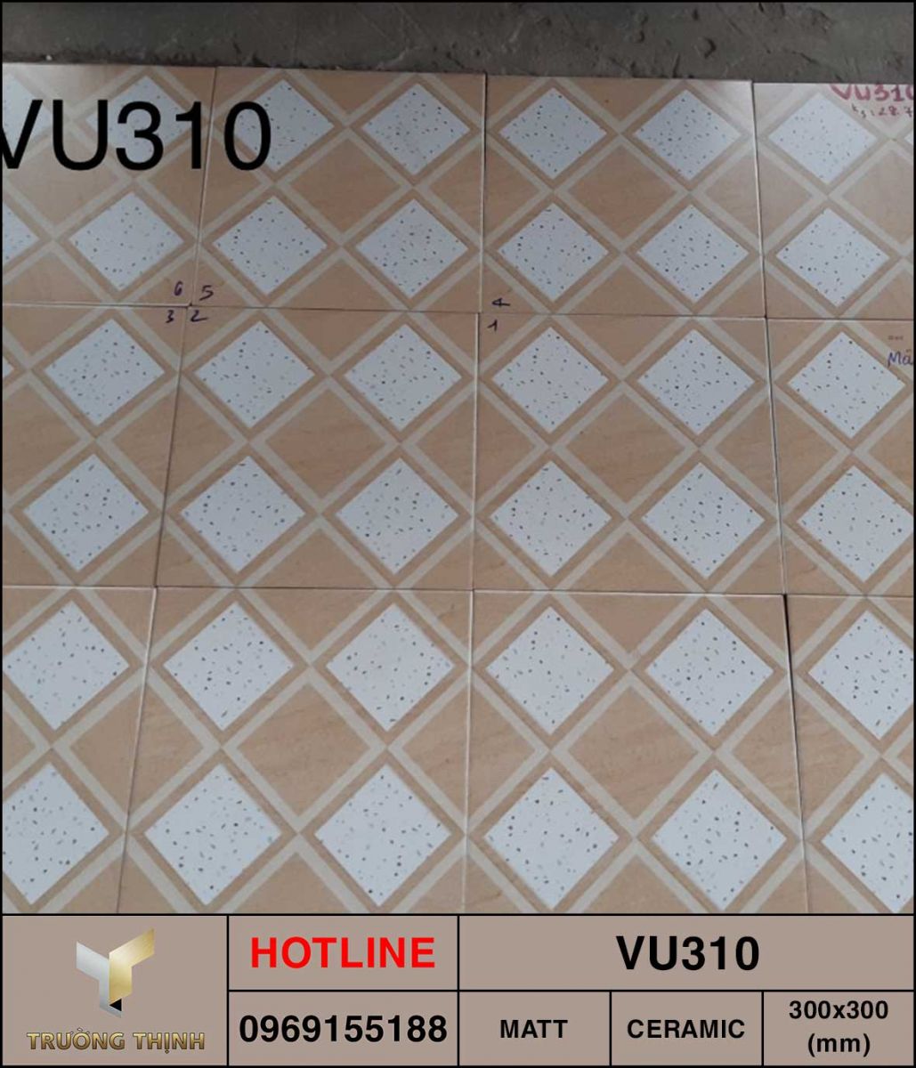 Gạch Viglacera 300x300 mã VU310 được sản xuất bởi những nguyên liệu chất lượng tốt nhất và công nghệ hiện đại nhất, đảm bảo những tiêu chuẩn chất lượng tốt nhất, đem đến sự hài lòng cho người sử dụng, đáp ứng ứng tốt hơn nhu cầu thẩm mỹ của nhiều công trình khác nhau.