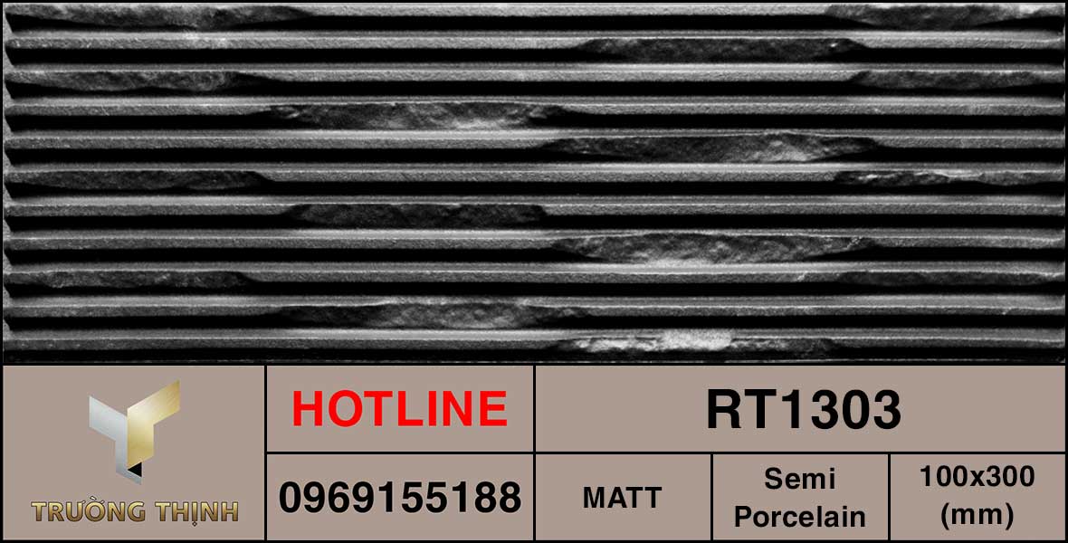 Gạch Viglacera RT1303 trong bộ sưu tập gạch thẻ trang trí với những đường vân sóng đẹp độc đáo cùng với Tone màu đen đơn giản mà hiện đại, cùng kích thước 100x300, bề mặt định hình, men Matt sẽ đưa bạn tìm đến những cảm hứng sống tự nhiên, trong phong cách kiến trúc của riêng mình. Với Viglacera RT1303 chúng tôi hi vọng bạn sẽ tìm thấy bản sắc riêng trong chính ngôi nhà của mình