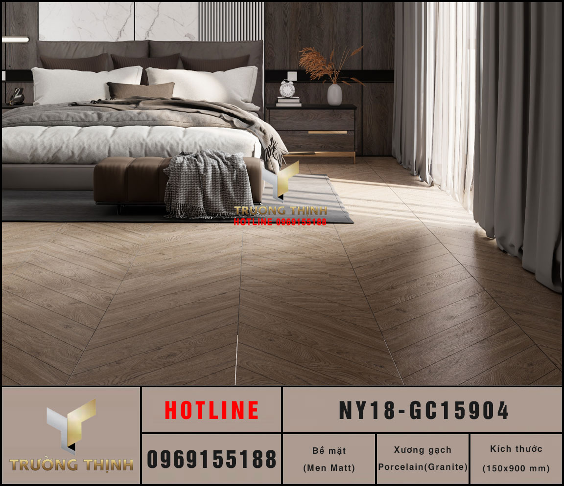 Gạch lát nền giả gỗ màu nâu đất 150x900 Viglacera NY18-GC15904: Đỉnh cao của sự sang trọng và bền bỉ