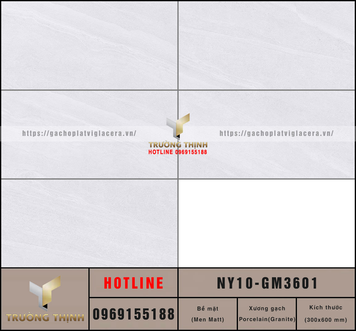 Khác với các dòng gạch men thông thường, gạch Viglacera NY10-GM3601 sở hữu xương gạch Porcelain (hay còn gọi là gạch bán sứ/granite). Thành phần chính gồm bột đá tự nhiên được nung ở nhiệt độ cao trên 1200°C, giúp viên gạch có độ cứng cực cao, khả năng chịu lực va đập tốt và độ hút nước gần như bằng không ($<0.5\%$). Điều này giúp công trình tránh được tình trạng nứt vỡ hay ẩm mốc sau thời gian dài sử dụng.