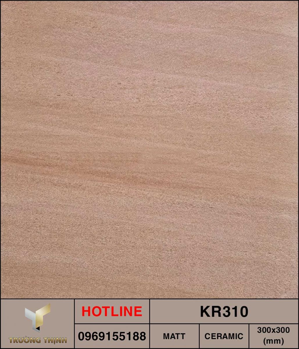 Gạch Viglacera 300x300 mã KR310 được sản xuất bởi những nguyên liệu chất lượng tốt nhất và công nghệ hiện đại nhất, đảm bảo những tiêu chuẩn chất lượng tốt nhất, đem đến sự hài lòng cho người sử dụng, đáp ứng ứng tốt hơn nhu cầu thẩm mỹ của nhiều công trình khác nhau.