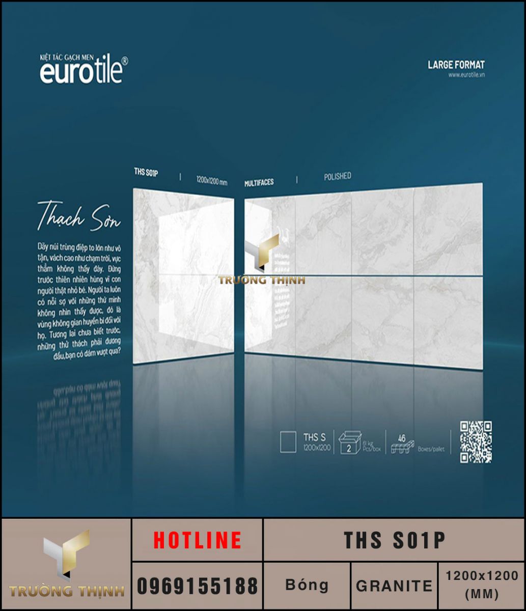 Quý khách khi có nhu cầu xem mẫu gạch Eurotile Thạch Sơn THS S01P, hay quan tâm tới giá gạch Eurotile THS S01P hãy đến với đại lý phân phối gạch Eurotile chính hãng - Showroom gạch Eurotile Trường Thịnh để xem sản phẩm gạch 1200x1200 trên thực tế và rất nhiều sản phẩm khác được trưng bày tại Showroom.