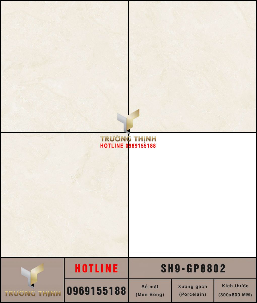 Gạch Viglacera Sông Hồng SH9-GP8802 là sự lựa chọn hoàn hảo cho những ai đang tìm kiếm một loại gạch lát nền chất lượng cao, sang trọng và đẳng cấp. Với những ưu điểm vượt trội về chất lượng, tính thẩm mỹ và độ bền, sản phẩm này sẽ mang đến cho không gian của bạn một vẻ đẹp hoàn hảo và ấn tượng. Hãy đến với tổng đại lý gạch Viglacera Trường Thịnh để được tư vấn và lựa chọn những sản phẩm gạch ốp lát tốt nhất cho ngôi nhà của bạn.