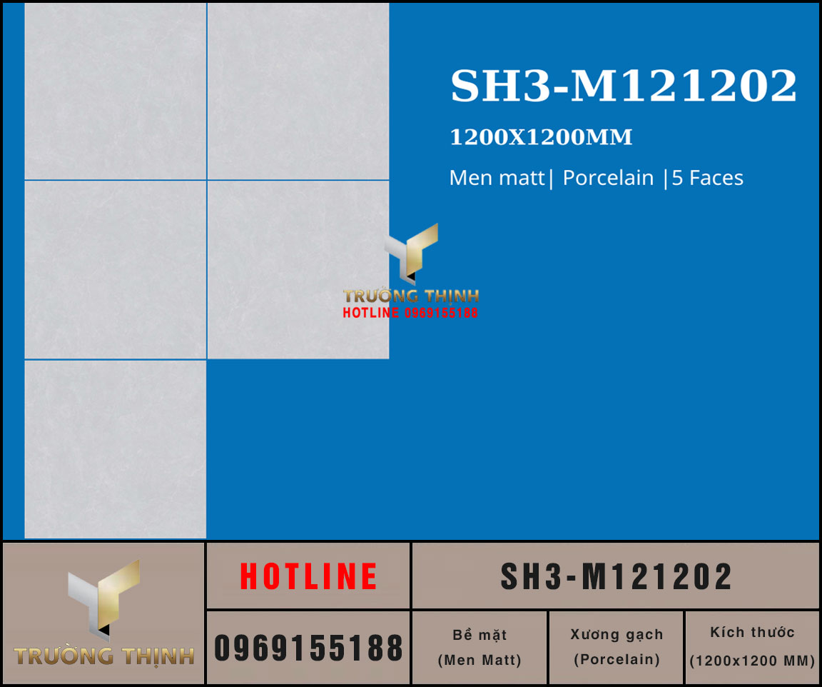 Gạch Viglacera 1200x1200 mã SH3-M121202 được sản xuất bởi những nguyên liệu chất lượng tốt nhất và công nghệ hiện đại nhất tại nhà máy Viglacera, đảm bảo những tiêu chuẩn chất lượng tốt nhất, đem đến sự hài lòng cho người sử dụng, đáp ứng ứng tốt hơn nhu cầu thẩm mỹ của nhiều công trình khác nhau.